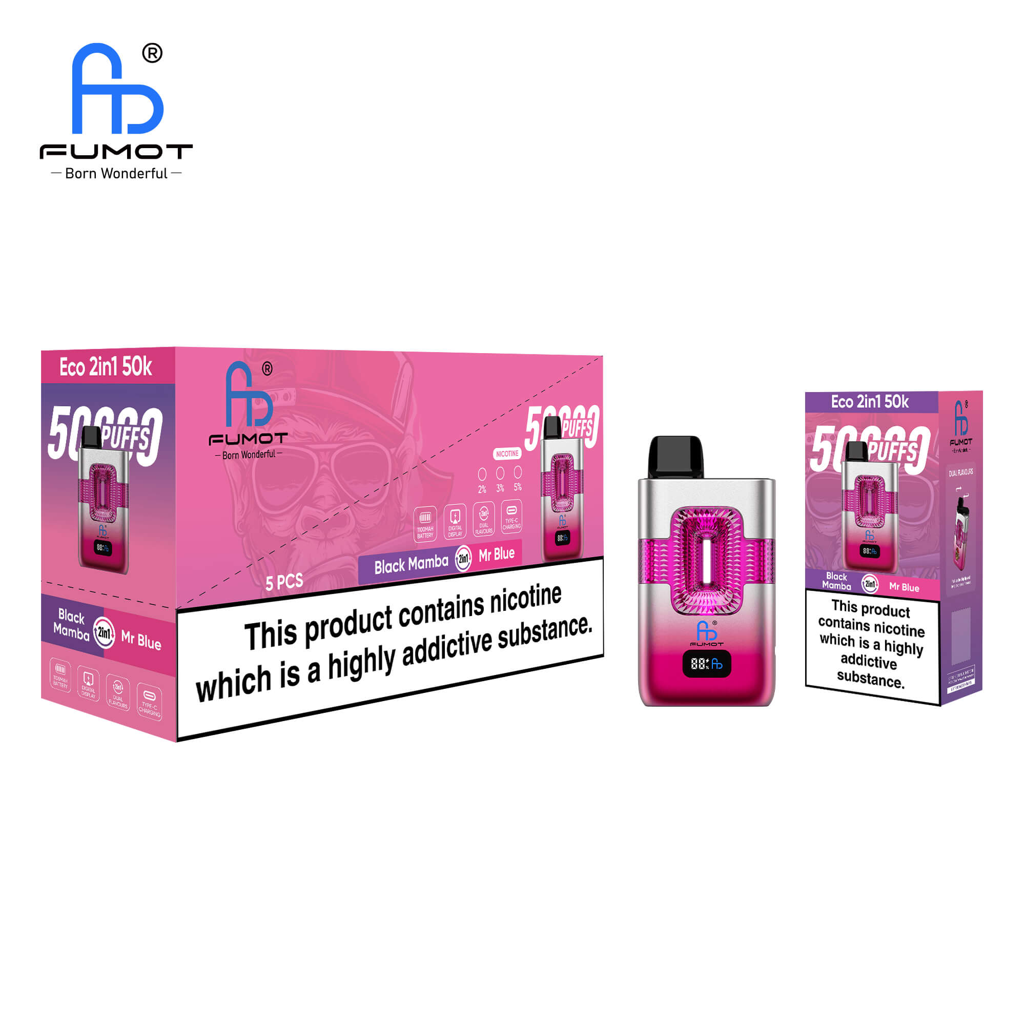 Der Fumot Eco 2-in-1 50K ist die ultimative Lösung für Vaper, die Wert auf maximale Vielfalt und Langlebigkeit legen. Dieses TPD-konforme und vollständig legale Prefilled-Pod-Kit liefert beispiellose 50.000 Züge durch die Nutzung eines einzigartigen modularen E-Liquid-Systems.