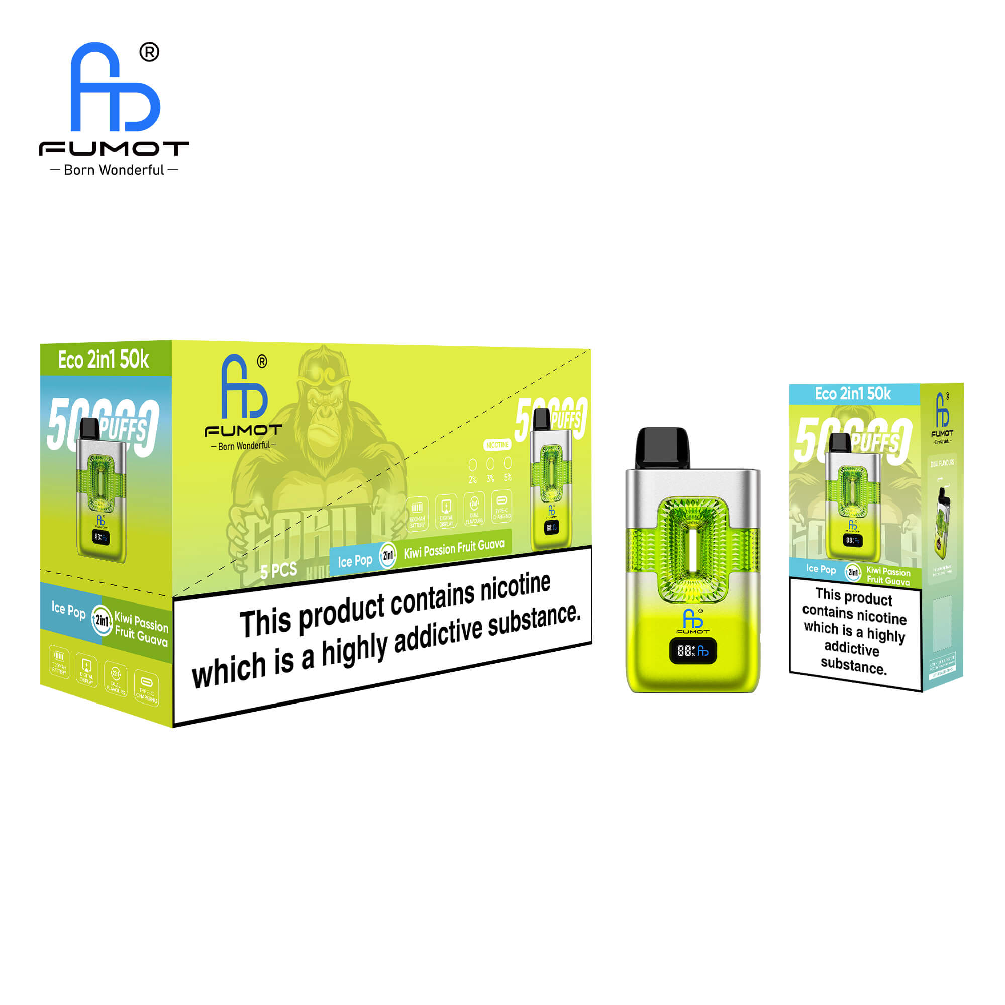 Ausgestattet mit einem brillanten Smart-LED-Display und einem leistungsstarken, wiederaufladbaren 950mAh Akku, nimmt der Fumot Eco 50K jegliche Ungewissheit aus Ihrem Alltag. Ob Sie Fan nostalgischer Klassiker oder exotischer Tropen-Mixe sind – dieses Kraftpaket mit Dual-Mesh-Coil liefert ein sanftes, konstantes und intensives Geschmackserlebnis vom ersten bis zum letzten Zug.